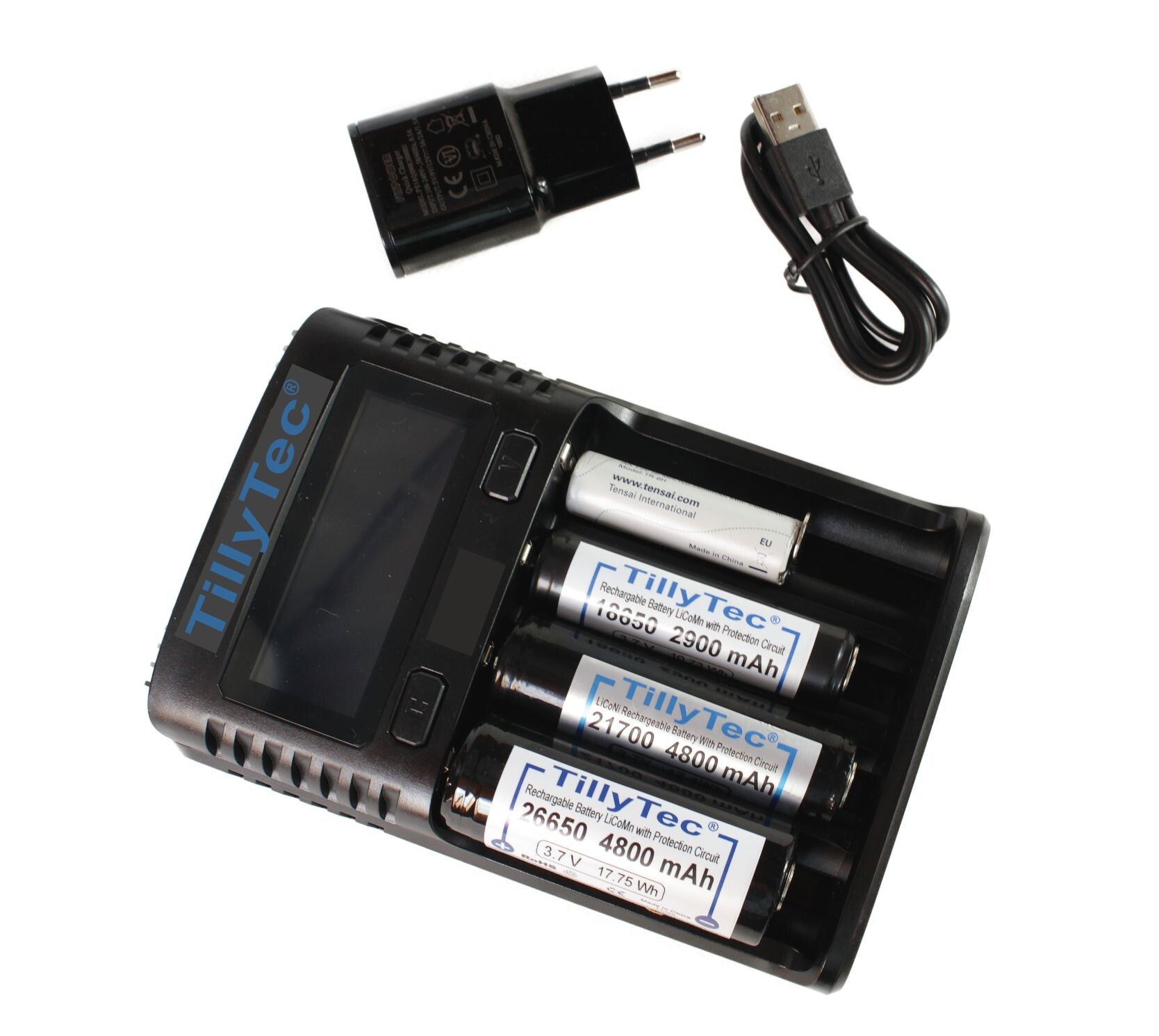 Zo kunnen bijvoorbeeld lithiumbatterijen 21700 / 26650 / 18650 en ook NiMh-batterijen, bijvoorbeeld AAA / AA / C, worden opgeladen.