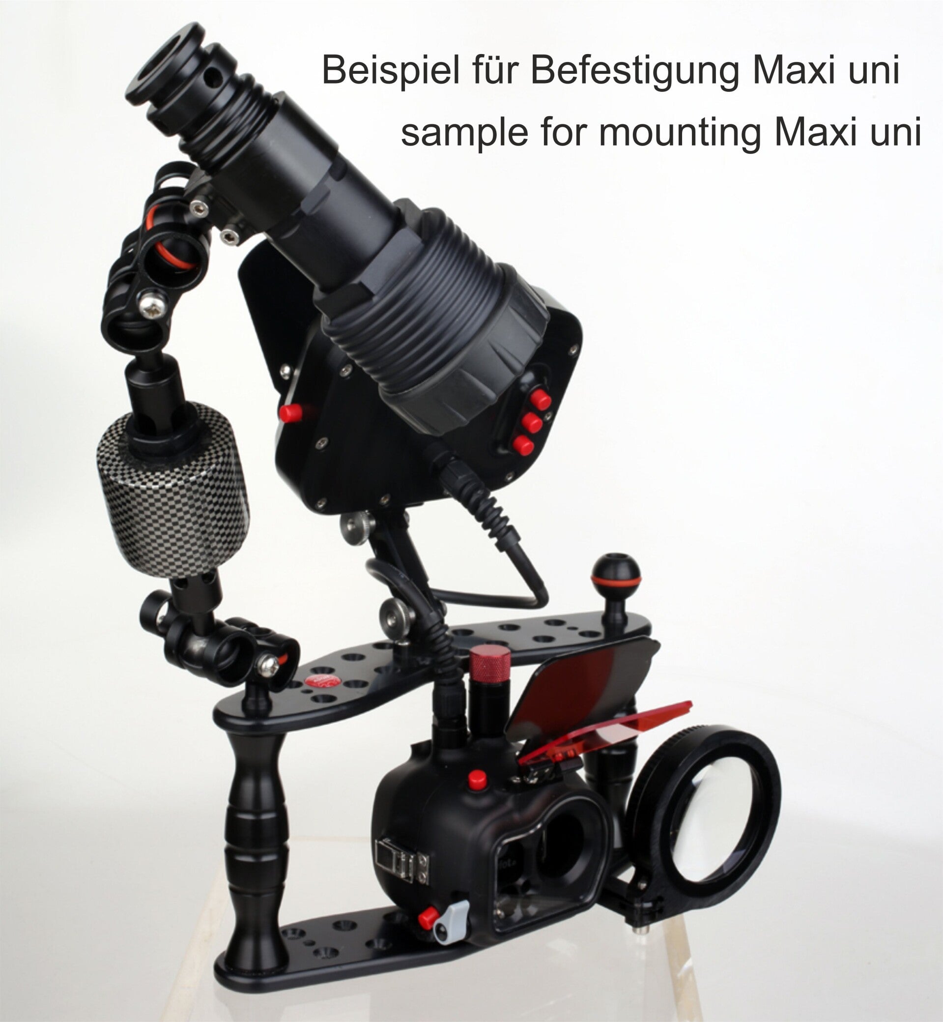 TIP: De accubuizen van de Maxi uni zijn aan het uiteinde voorzien van een universele houder. Op aanvraag zijn verschillende kogeladapters voor alle mogelijke bevestigingen verkrijgbaar.