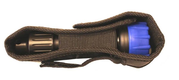 en toch stevig blijft zitten. Het holster wordt aan de voorzijde afgesloten met een flap door middel van klittenband.