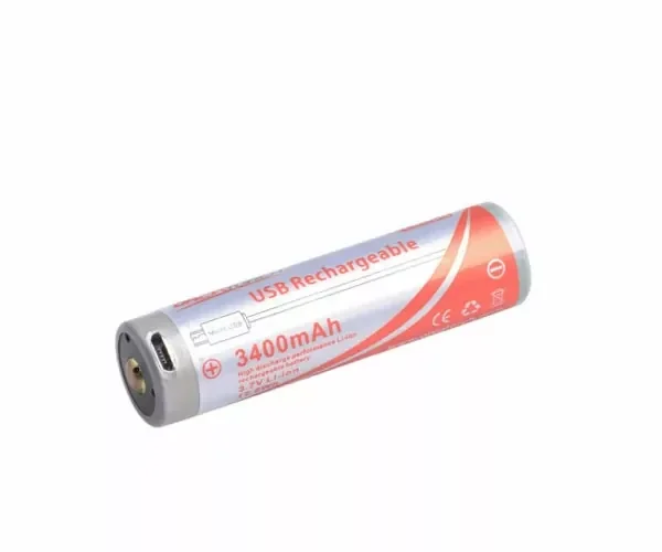 OrcaTorch USB direct opladen 18650 lithiumbatterij gebruik kwaliteit Panasonic cel, 3400 mAh capaciteit en 500 keer opladen-ontladen functie. Patent USB directe oplaadfunctie en oplaad indicatorfunctie, het is handig in gebruik tijdens het reizen.