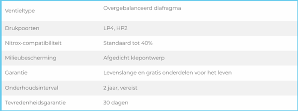 - Nitrox-compatibiliteit – Standaard tot 40%.