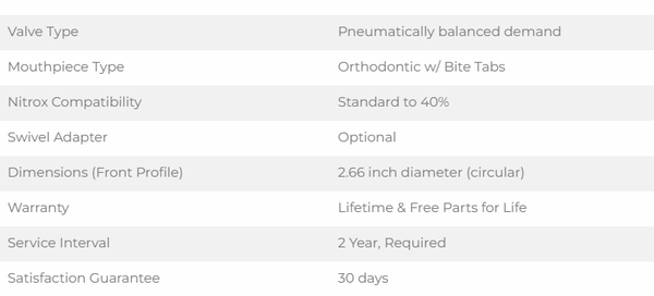 Featuring a pneumatically balanced second stage for smooth breathing, designed to respond to the natural inhalation and to reduce resistance.