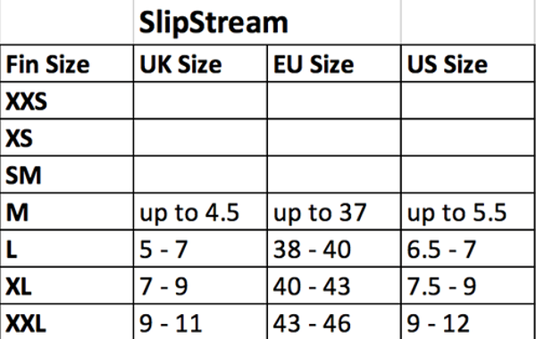 Eigenschappen van de OMS Slipstream vinnen: Hyrodynamic ontwerp, ideaal voor het uitvoeren van bijvoorbeeld de frog kick en back kick Materiaal: Lichtgewicht thermoplastisch elastomeer met een neutraal drijfvermogen Verschillende maten, voor het gebruik met natpakschoenen, rockboots of droogpak schoenen Springstraps De vinnen vallen iets ruimer dan de Scubapro Jet Fins Alle kleuren behalve zwart hebben een beperkte oplage